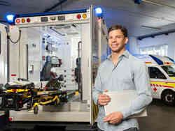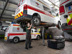 Sicherheit beim Einsatz geht vor: Da sind sich Sanitäterin Enisa Tol und Gerald Wiesinger, der für die Konfiguration der Fahrzeuge zuständig ist, einig. Daher werden die drei Einsatzfahrzeugtypen, die beim Roten Kreuz Oberösterreich verwendet werden, standardmäßig mit den neuesten Fahrzeugsicherheits-Features ausgerüstet. Die Basis bildet meist ein robuster Kastenwagen der Marke Volkswagen Nutzfahrzeuge. Dieser wird von einer Spezialfirma mit einem maßgeschneiderten Kofferaufbau versehen. Doch nicht nur äußerlich haben die Einsatzfahrzeuge einiges zu bieten. Im Inneren unterstützen digitale Hightech-Lösungen die Sanitäter*innen bei ihrer oft fordernden Arbeit. Gerald Wiesinger, selbst erfahrener Rettungssanitäter, nennt die Highlights der letzten Jahre: die elektrohydraulische Trage für den Patiententransport von der Wohnung ins Rettungsauto, der Monitor für die Vitaldatenüberwachung an Bord und die telemedizinische Anbindung. Auch aus der Ferne kann ein Notarzt oder eine Notärztin über Telemedizin die Vitaldaten der Patient*innen während der Fahrt im Auge behalten und den Sanitäter*innen Anweisungen geben. Doch so fortschrittlich die Technik sein mag – der Mensch bleibt das Herzstück jedes Einsatzes. Deshalb absolvieren alle Fahrer*innen ein umfassendes Ausbildungsprogramm, das nicht nur Fahrtechnik, sondern auch den Ernstfall im Simulator trainiert. Denn wer Leben retten will, muss vor allem eines beherrschen: sicher ankommen.